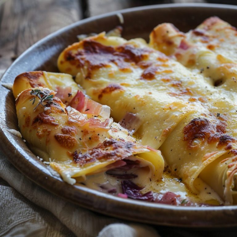 Crêpes au radicchio, au speck et à la sauce béchamel
