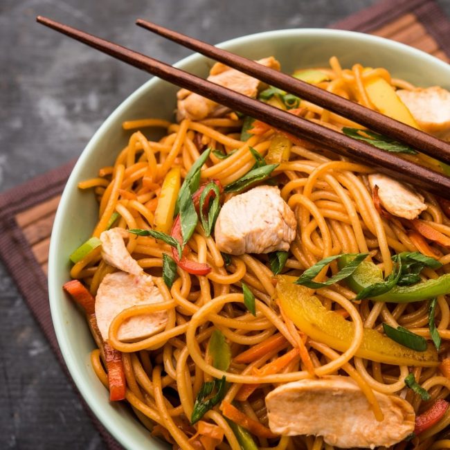 NOODLES DI RISO CON POLLO ALL’AROMA DI ARANCIA