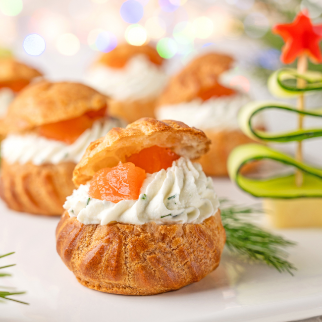 Bignè salati salmone, ricotta e Strakì