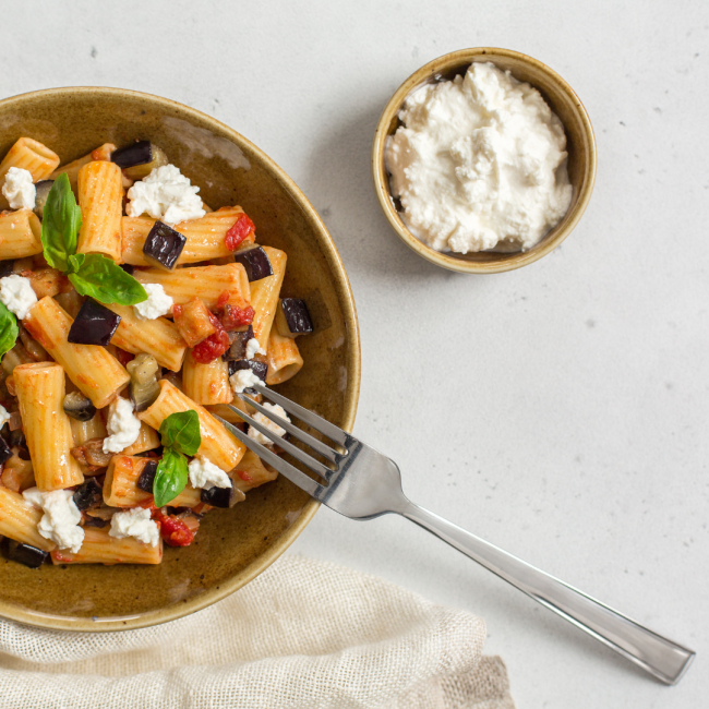 Pasta alla norma rivisitata con ricotta fresca