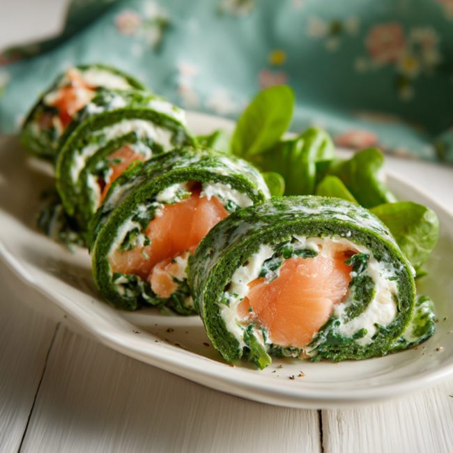 Roll di spinaci con salmone e Strakì
