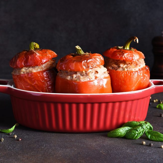 Peperoni ripieni di ricotta, melanzane e pinoli